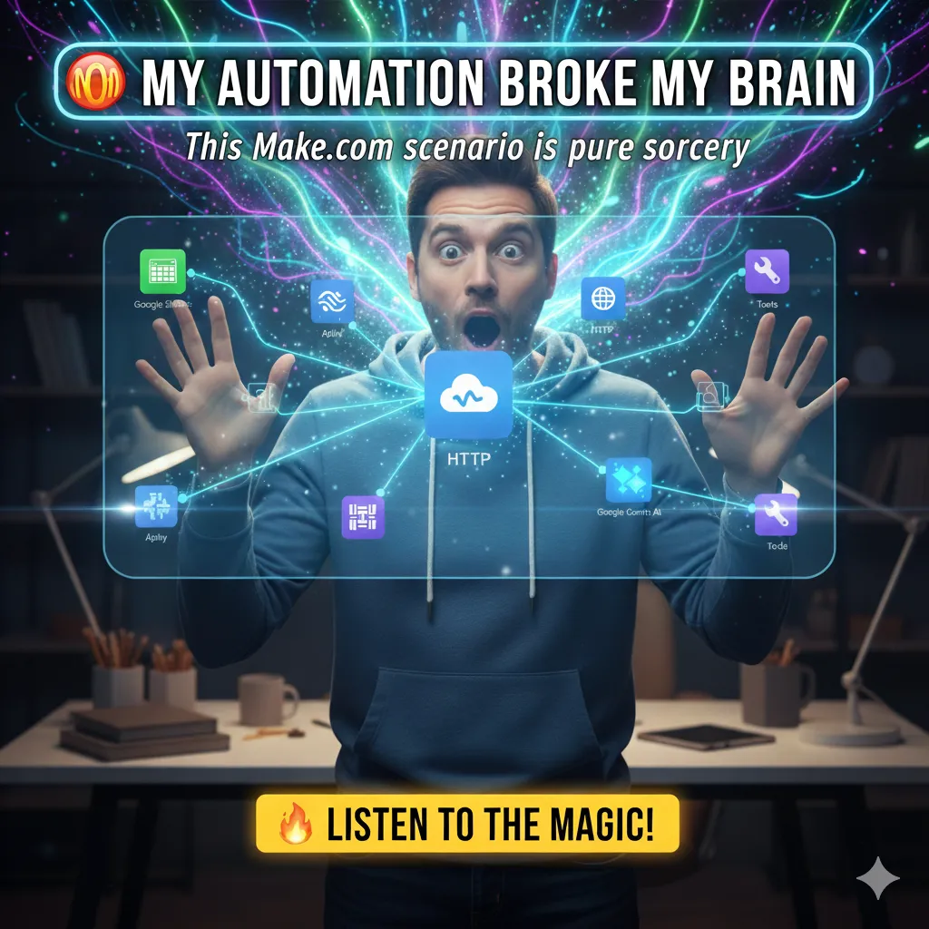The automation extracts the transcript, creates a unique script, generates a professional 11 Labs voiceover, and designs a thumbnail concept.